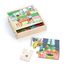 Graziosa scatola in legno contenente 4 puzzle in legno da 6 pezzi sul tema della casa.