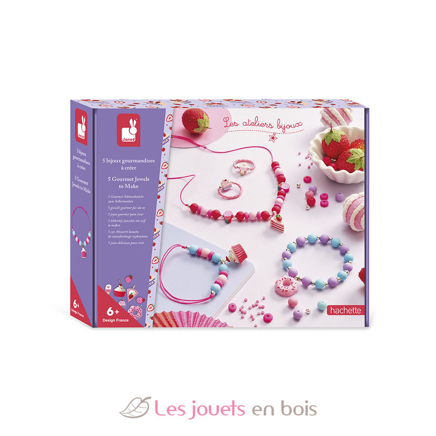 Scopri il kit creativo 5 gioielli gastronomici fai-da-te di Janod, un'attività creativa per bambini dai 6 anni.