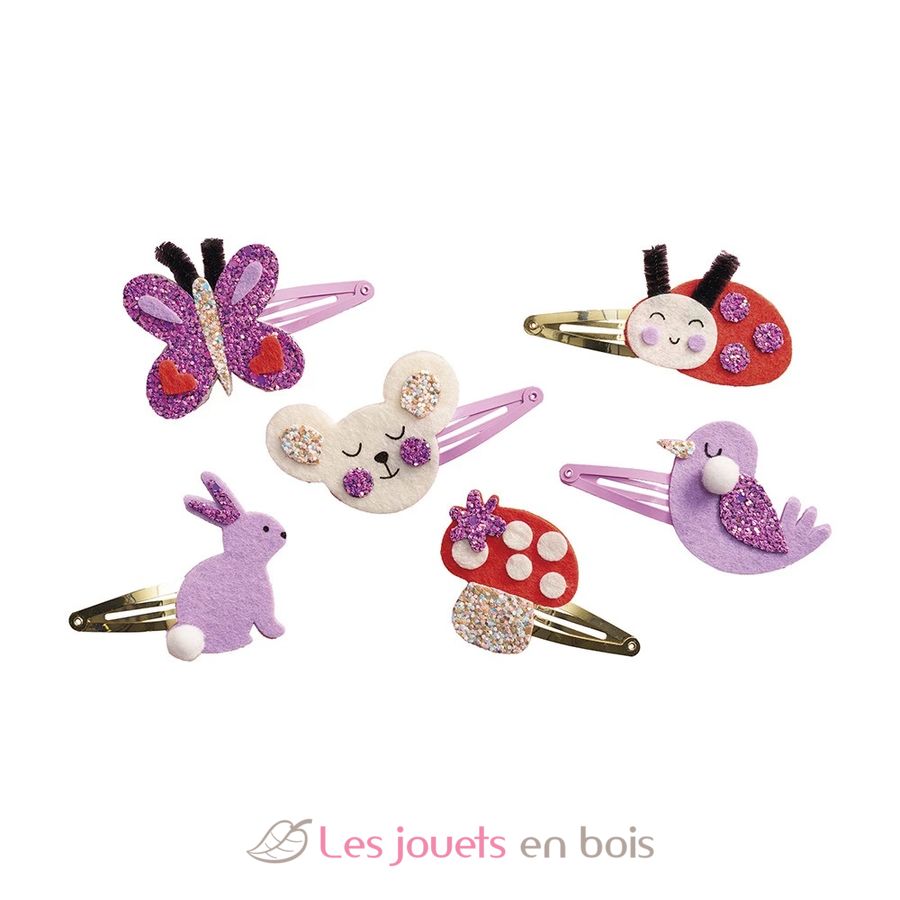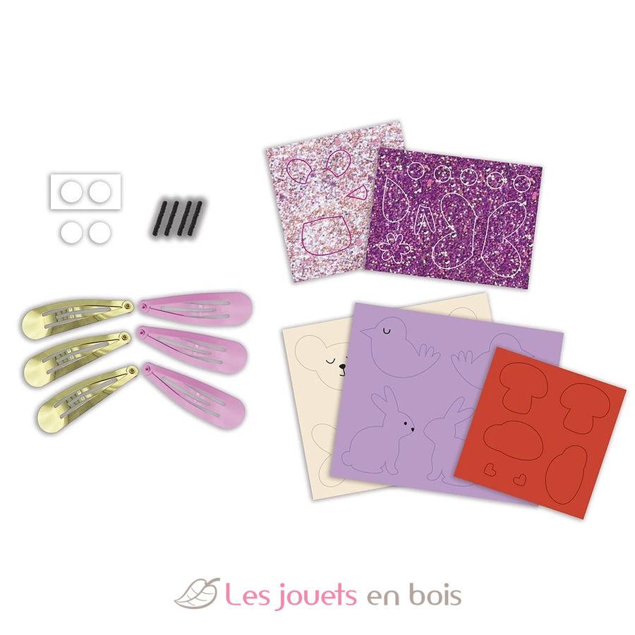Scopri il kit creativo 6 barrette per capelli glitterate fai-da-te di Janod, un'attività creativa per bambini dai 5 anni.