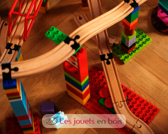 I Toy2 Track Connectors creano possibilità completamente nuove dai mattoni e dai binari del treno in legno che già possiedi. Tutti i connettori per binari sono compatibili con Duplo®, Hubelino®, Biobuddi® e altri mattoncini simili. Tutti i connettori per binari sono compatibili con binari ferroviari in legno di Brio®, Ikea®, Bigjigs®, Viga®, Vilac®, Janod® e simili.