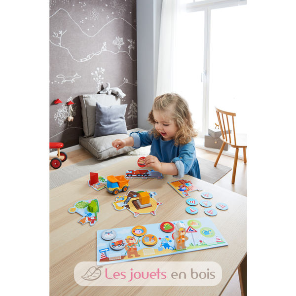 Al cantiere, un gioco da tavolo, dalla collezione "I miei primi giochi", con una simpatica storia da leggere ad alta voce e un veicolo Kullerbü con cassone ribaltabile incluso! Un gioco da tavolo per 1-4 giocatori, a partire da 2 anni, del marchio Haba. Rif. 305212.