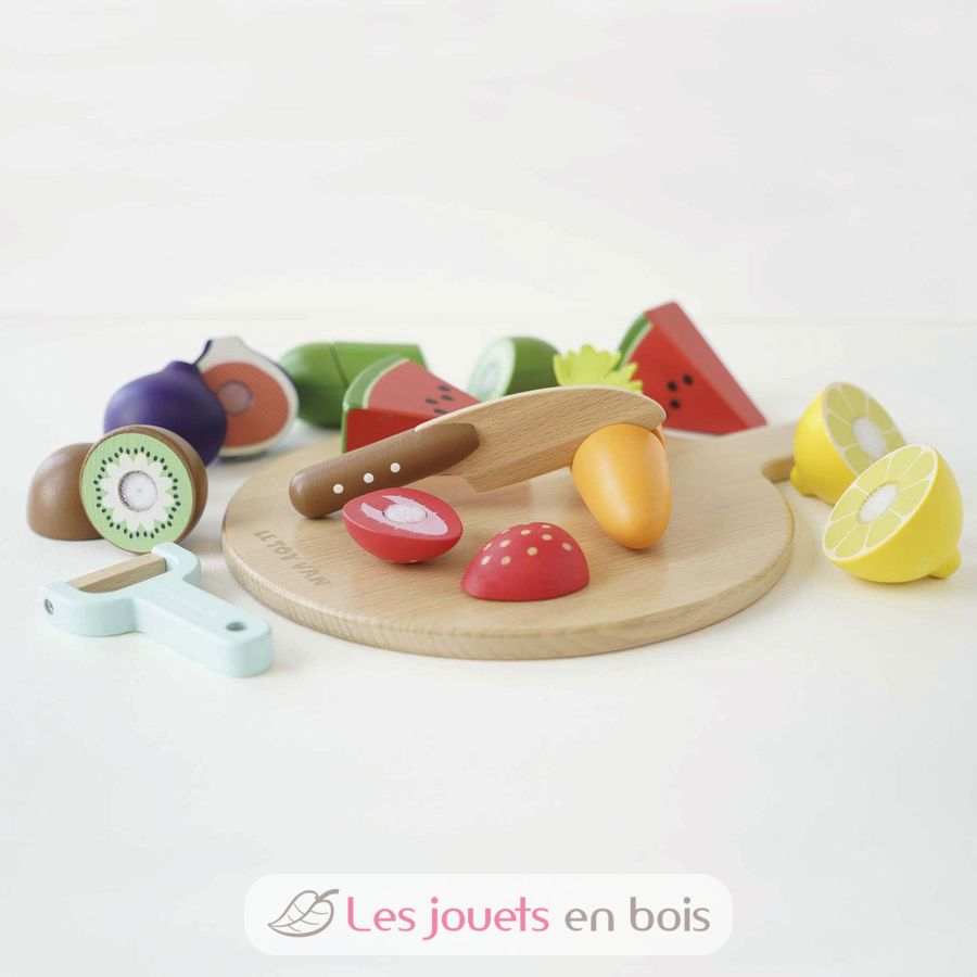 Con questo grazioso tagliere e i suoi alimenti in legno di Le Toy Van, i piccoli chef in erba adoreranno preparare pasti deliziosi.