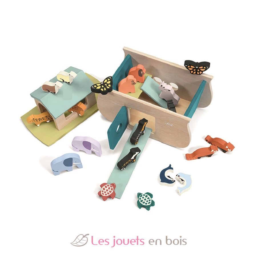 Arca di Noè con 20 animali in legno.
