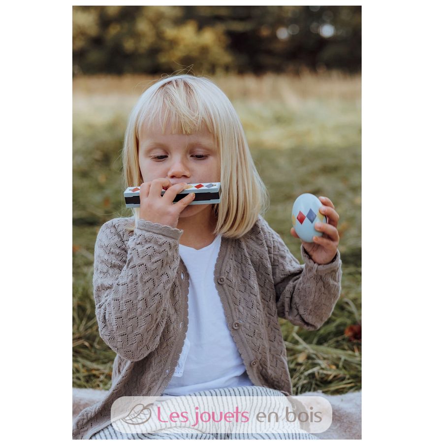 Questa armonica in legno è lo strumento perfetto per avvicinare i bambini alla musica e insegnare loro a controllare il respiro per creare suoni diversi.