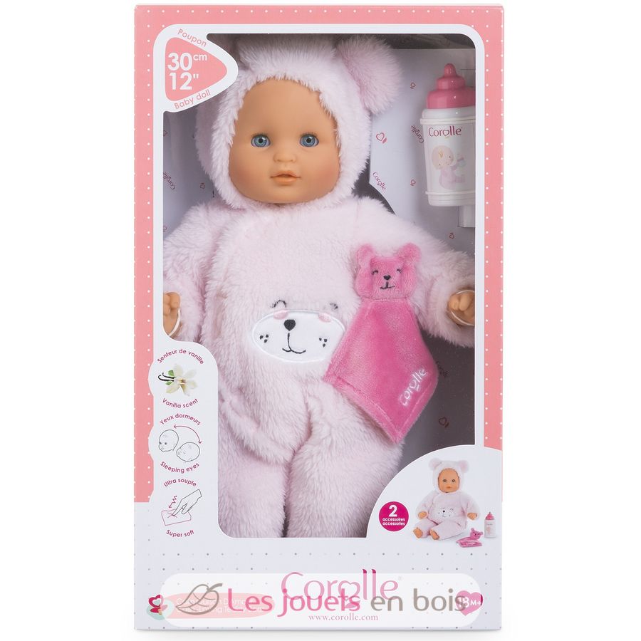 Questa bambola è dotata di due accessori: il suo peluche e la sua bottiglia. Questa bambola è ideale per bambini a partire dai 18 mesi.