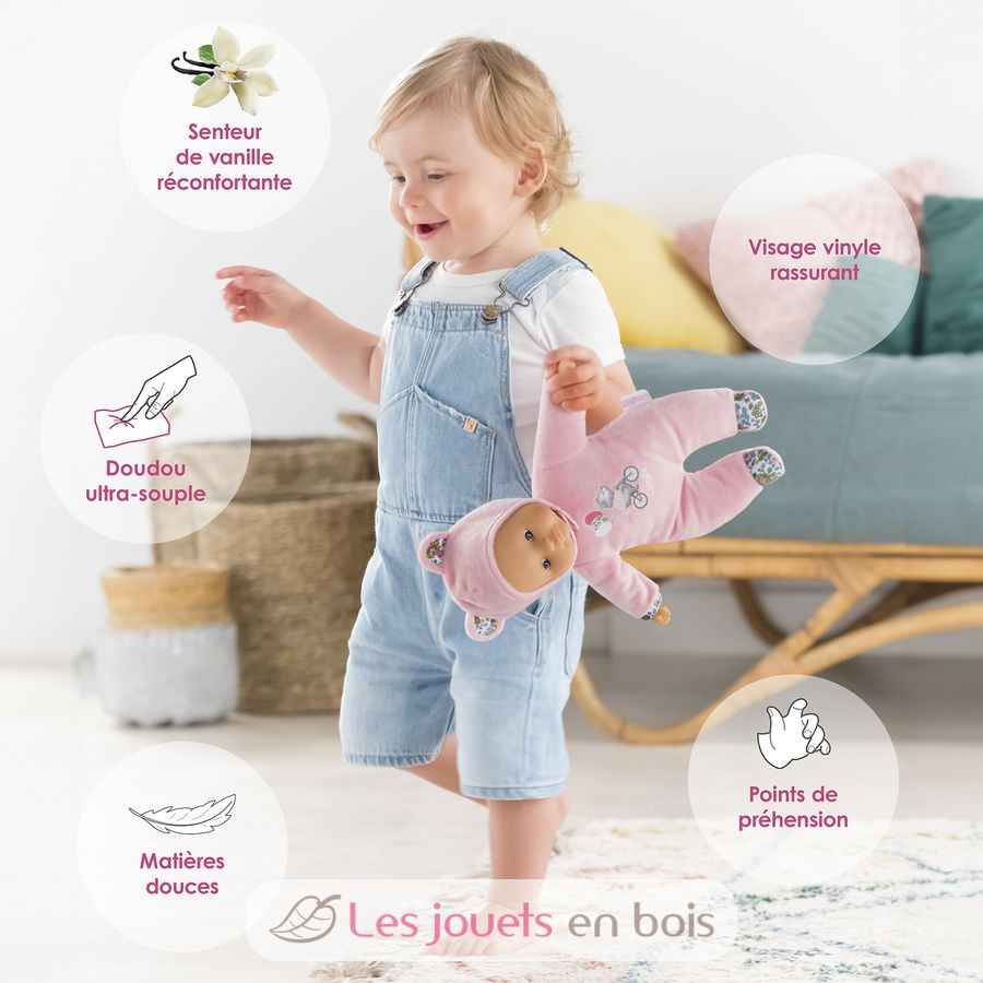 La bambola morbida che puoi portare ovunque. Rassicurante viso in vinile. Corpo flessibile. Confortevole profumo di vaniglia.