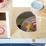 Andiamo in gelateria! Questo set da gioco gelato in legno rende perfetto il gioco di ruolo estivo. Il bancone del gelato dalle tonalità di legno blu, rosa e naturale convince come bancone di vendita da esposizione con tante funzioni e numerosi accessori. Svariate possibilità di gelati: ce ne è per tutti i gusti! La bacheca del gelato con vetrina in plastica, il congelatore con coperchio girevole trasparente e sistema d'arresto, il portaaccessori e lo scompartimento conservavivande fanno sì che lo stand del gelato sia sempre in ordine! I punti forti sono la paletta per gelato magnetica e il distributore di gelato cremoso e panna. Vi è anche una lavagnetta per scrivere.