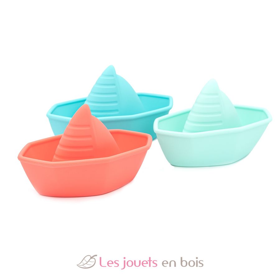 Questo set è composto da 3 barche in silicone per divertire il tuo bambino mentre fa il bagno o nuota. Questi giochi acquatici troveranno il loro posto nel bagno ma anche nella tua borsa da spiaggia per giocare in riva al mare. Gli barche galleggiano nell'acqua e il tuo bambino potrà usarli anche per abbeverarsi e versarsi l'acqua sopra la testa.