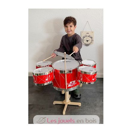 Il tuo bambino si immaginerà come un musicista con questa piccola batteria adattata alla sua taglia. Il pubblico entusiasta fa irruzione nella stanza del bambino e chiede di più!