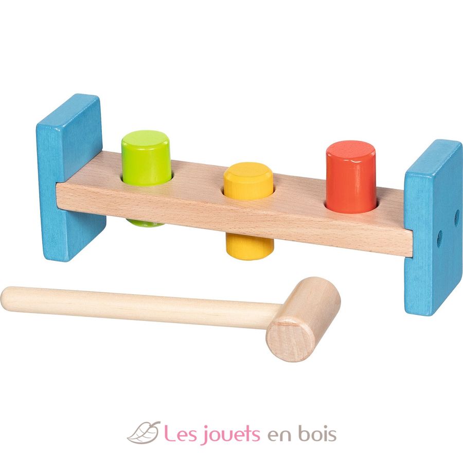 Questo banco da martellare, nonostante il suo aspetto semplice e quasi minimalista, è il giocattolo in legno perfetto per imparare a usare il martello!