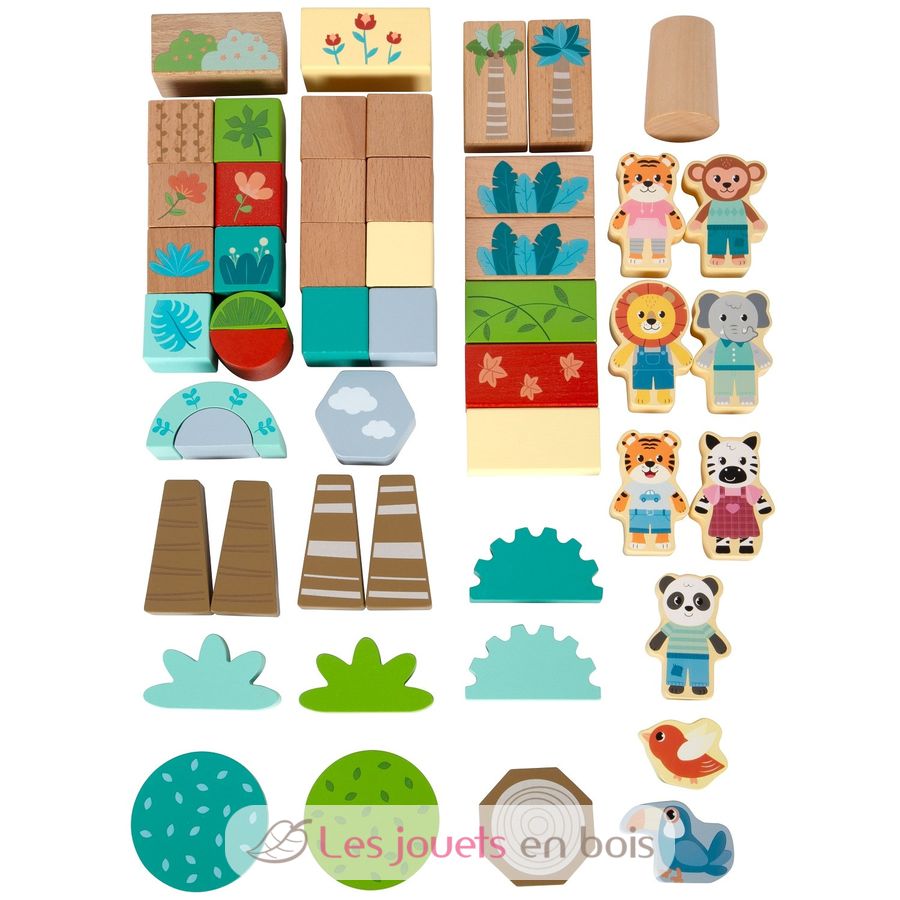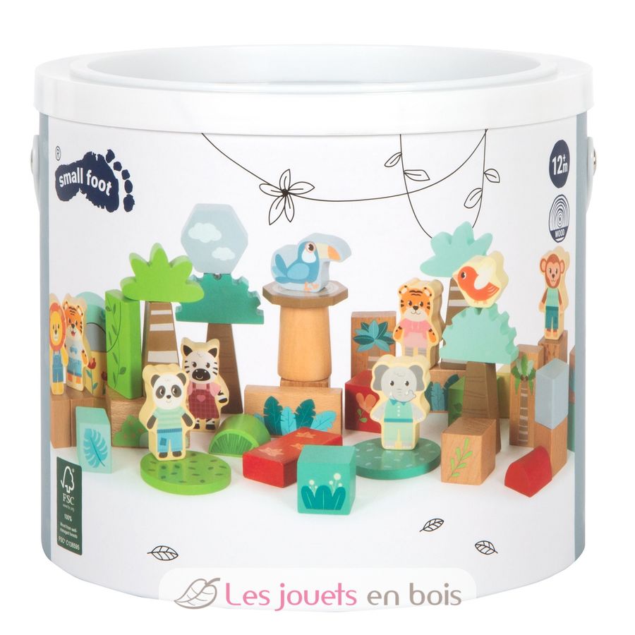 Questo set di blocchi da costruzione in legno da 50 pezzi in legno certificato FSC porta un mondo animale colorato in cameretta. Questo set realizzato con cura entusiasma con mattoncini di varie stampe e colori e dolci personaggi animali. Oltre ai mattoncini colorati e al naturale, nel set si trovano anche graziosi amici animali quali tigre, panda, scimmia ecc.: ideale per avventure di gioco fantasiose!