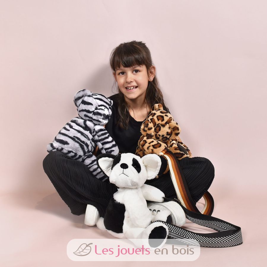 Comodo e soffice, questo borsone in peluche da 30 cm può essere indossato a spalla o a tracolla per accompagnare bambini e adulti in tutte le loro avventure. Una discreta tasca con cerniera sul retro permette di riporre gli oggetti essenziali: chiavi, telefono o piccoli tesori da tenere a portata di mano.