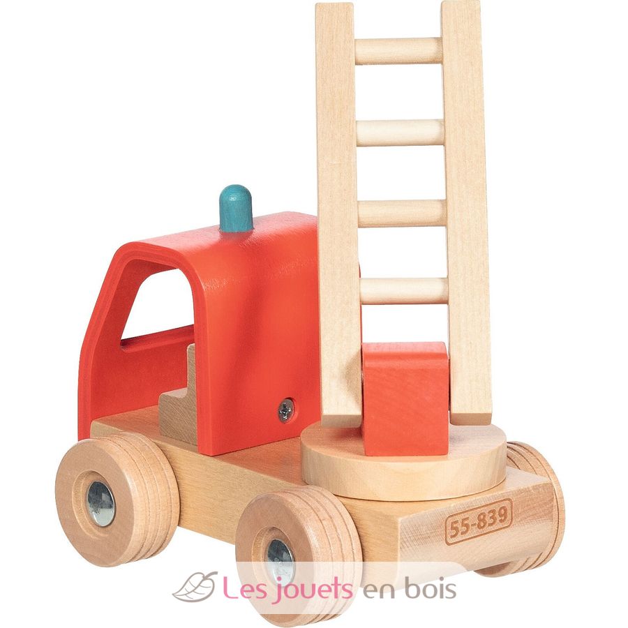 Camion pompieri con scala rosso, veicolo in legno della marca Goki.