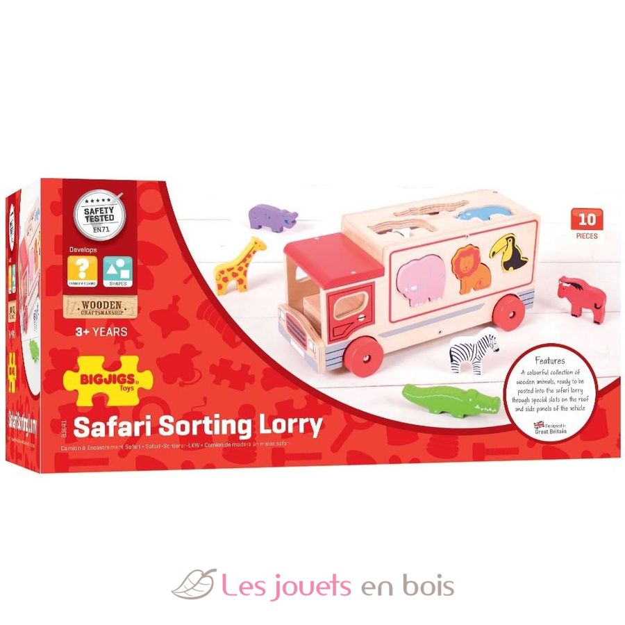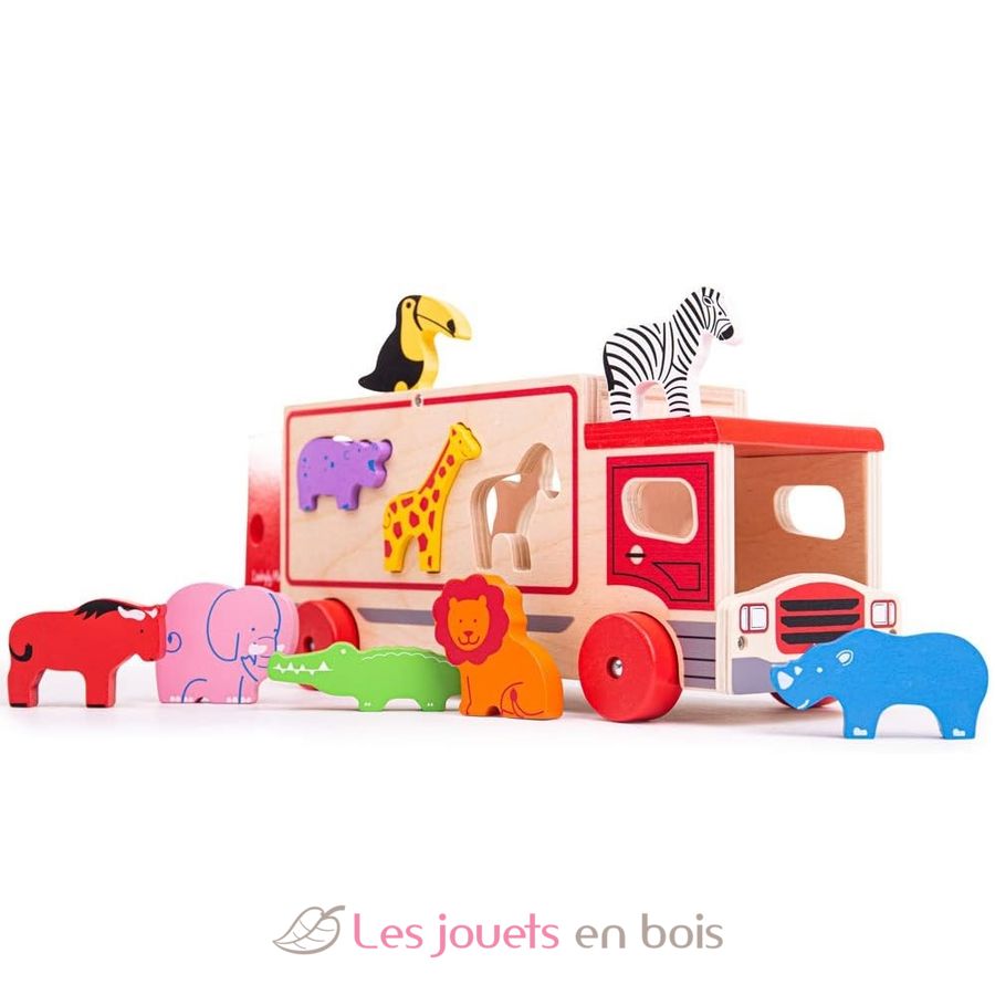 Camion Safari con forme a incastro, un giocattolo in legno del marchio Bigjigs Toys.