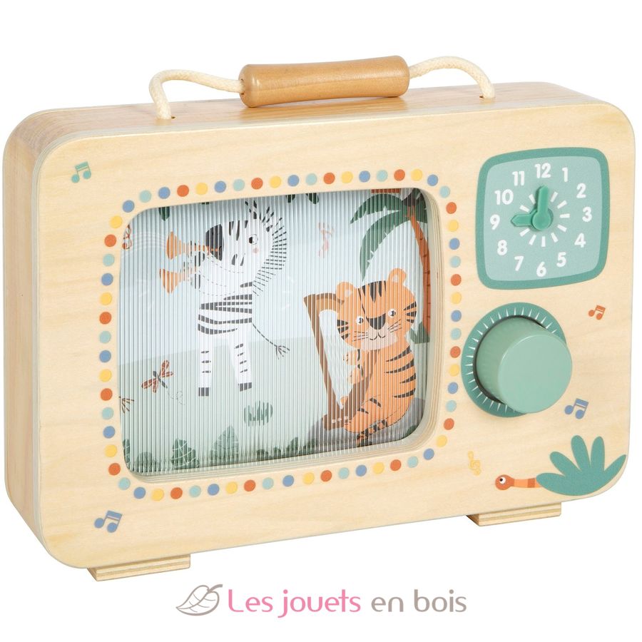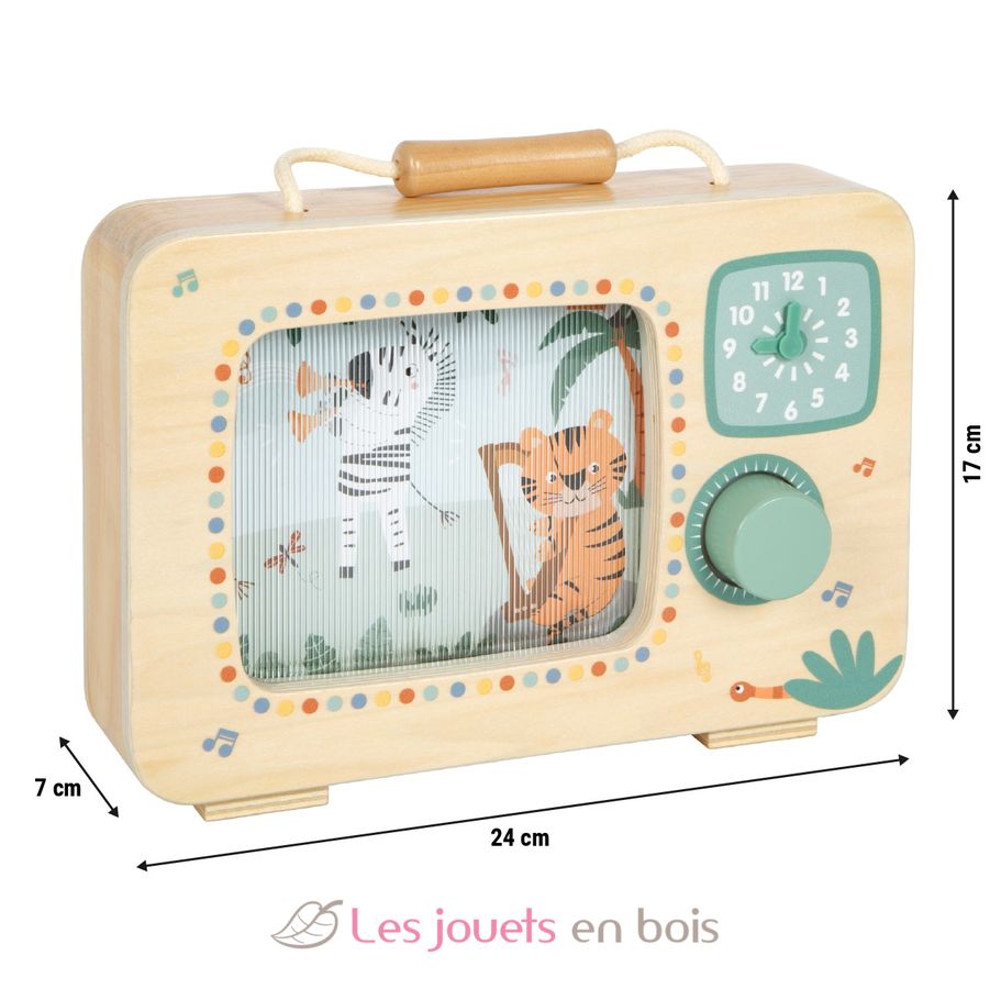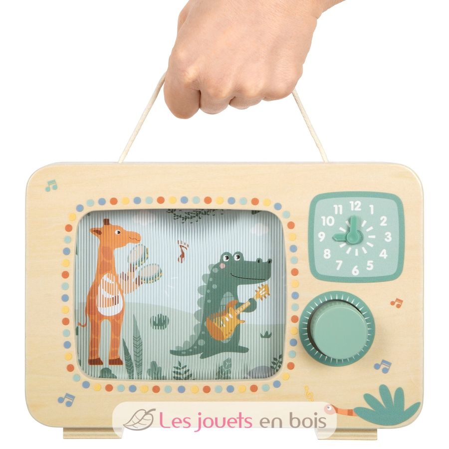Con questo grande carillon in formato TV in legno FSC certificato i bambini vivono l'esperienza di un'orchestra di allegri animali del Safari musicisti che prenda vita.