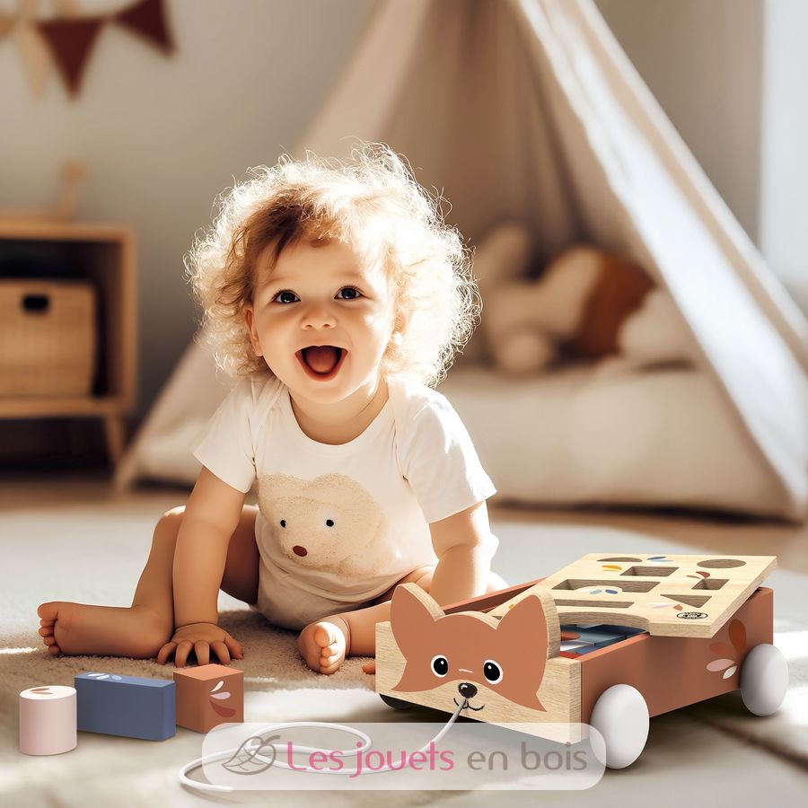 Incoraggia il gioco pratico, la mobilità e l'immaginazione con il carrello con blocchi a forma di volpe, un delizioso compagno per menti in crescita e manine impegnate.