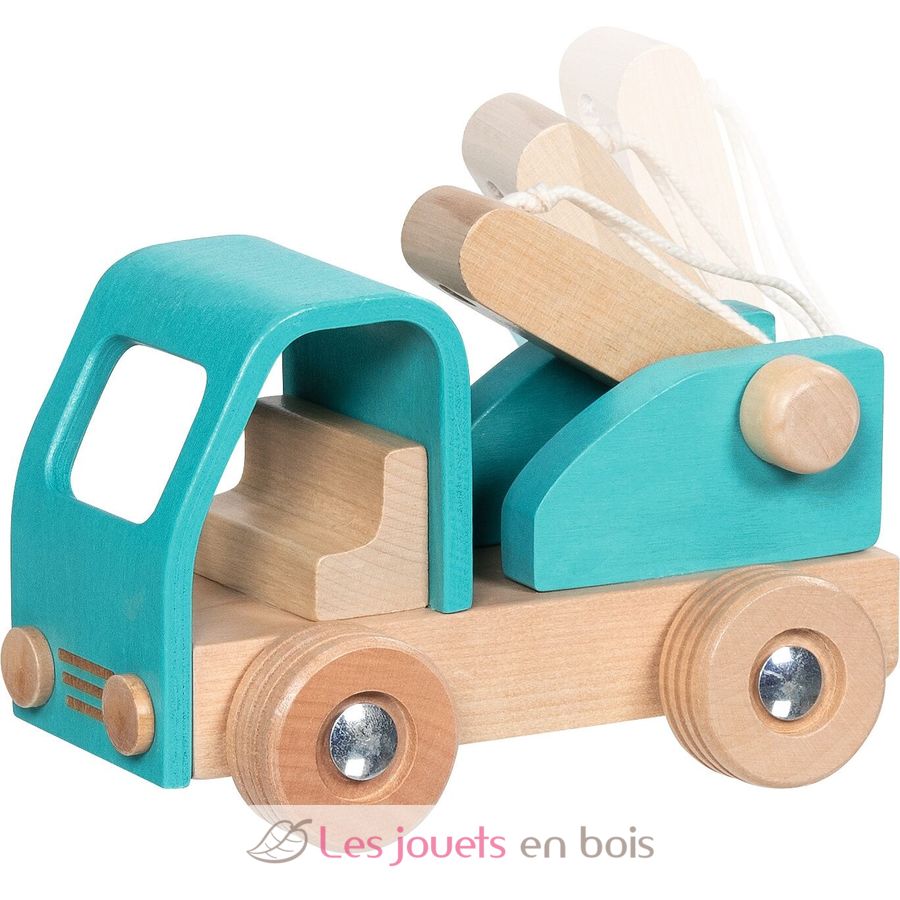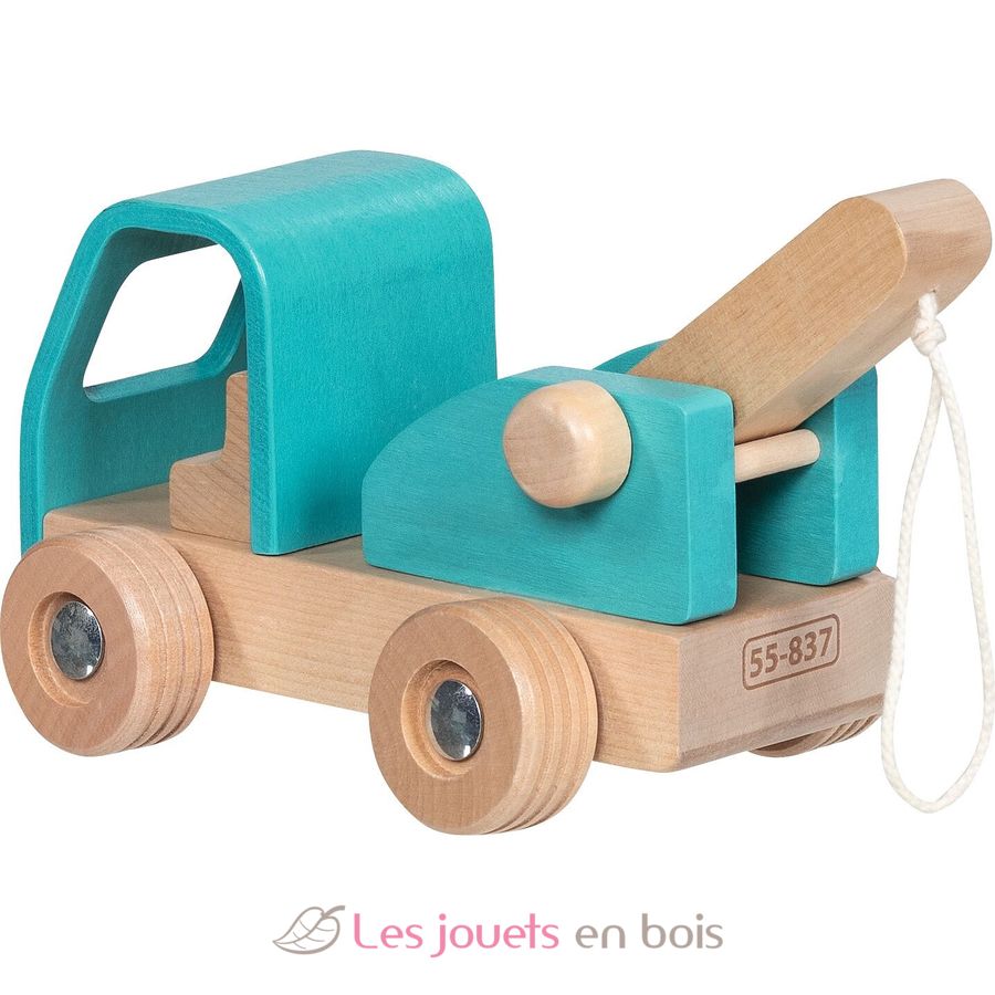Carro attrezzi blu, veicolo in legno della marca Goki.