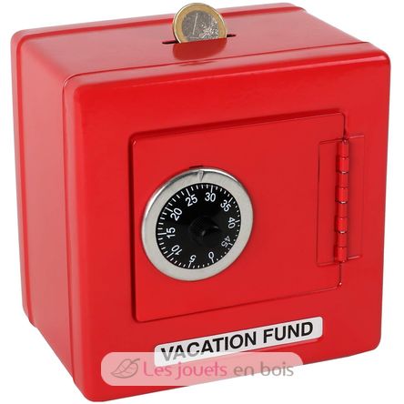 Cassaforte in metallo con serratura a combinazione, utilizzata come salvadanaio, del marchio Goki.