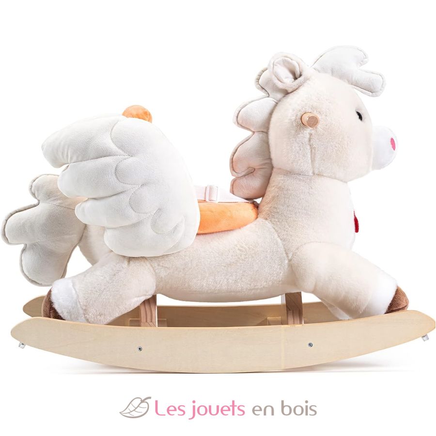 Il bambino potrà cavalcare in tutta sicurezza su questo morbidissimo peluche, che darà anche un tocco decorativo alla cameretta del bambino.