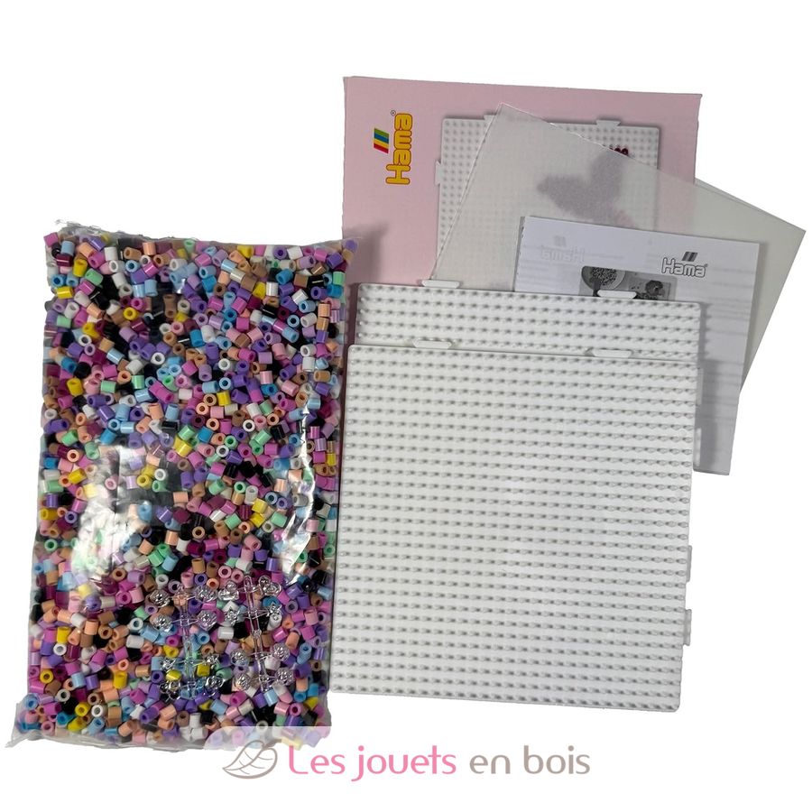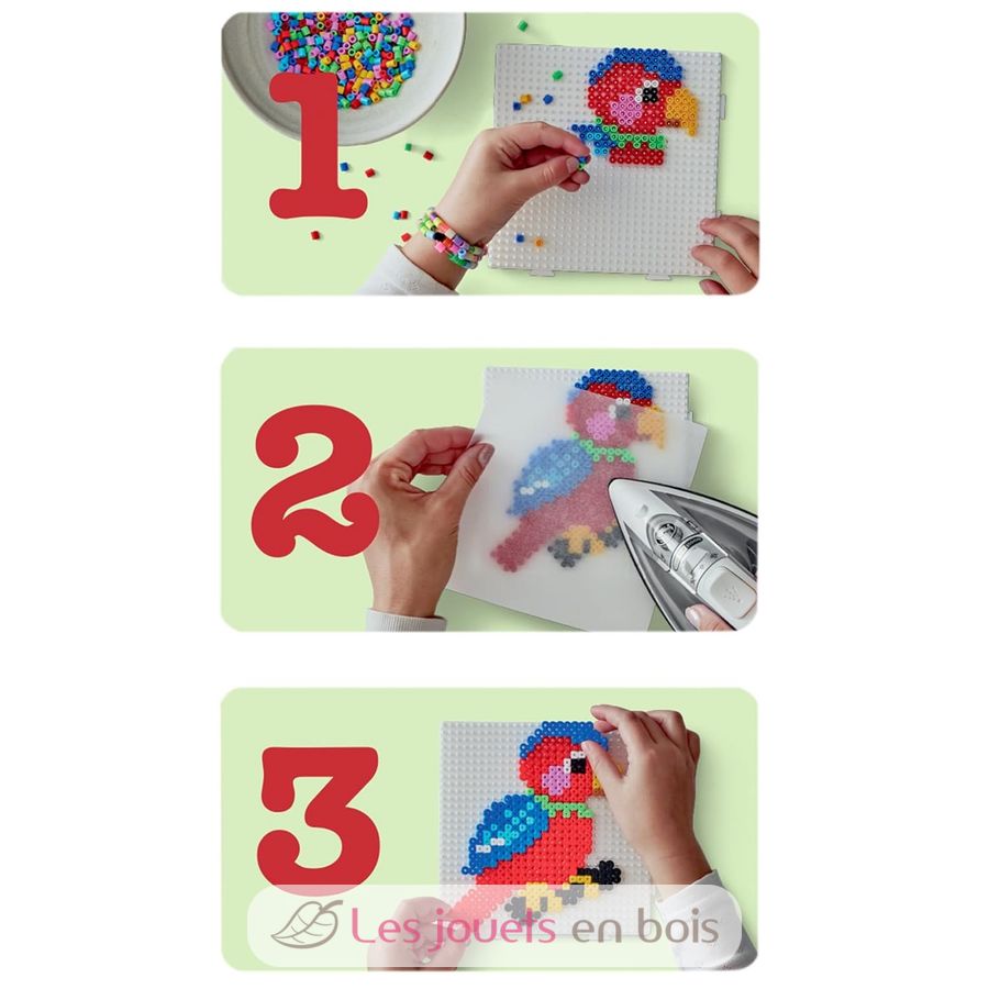 Contenuto: circa 4000 perline di plastica, 2 basi, 2 decorazioni luccicanti, un foglio con il modello colorato, un foglio di istruzioni e carta da stiro.