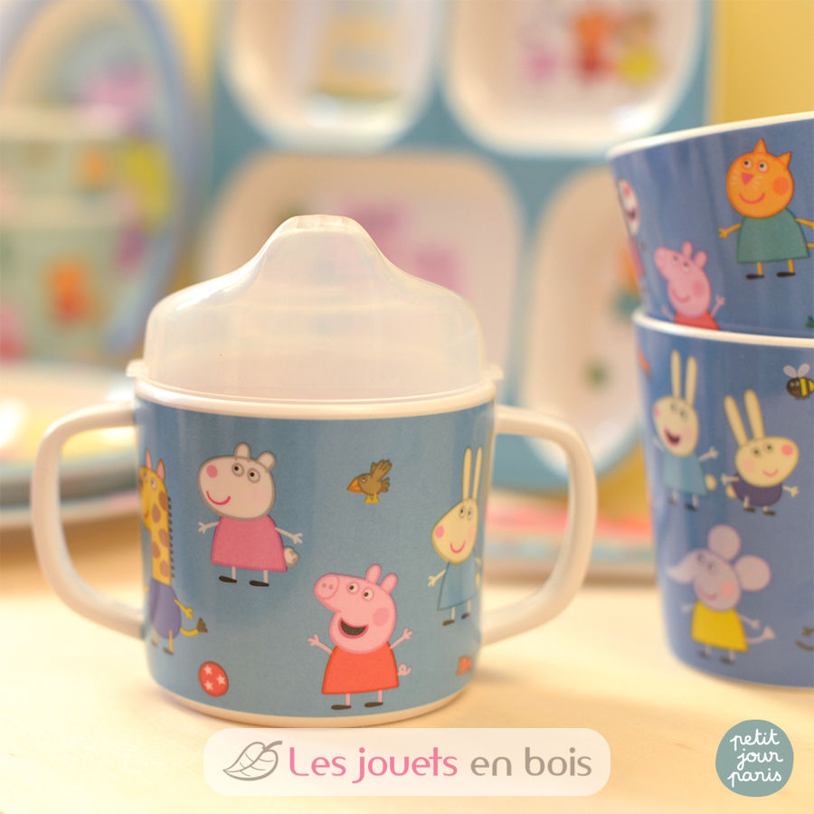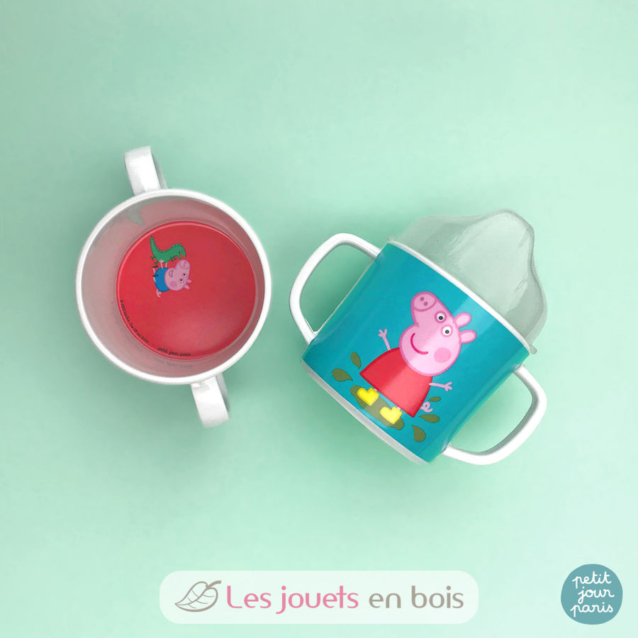 Tazza a due manici con beccuccio estraibile Peppa Pig per bambini del marchio Petit Jour.
