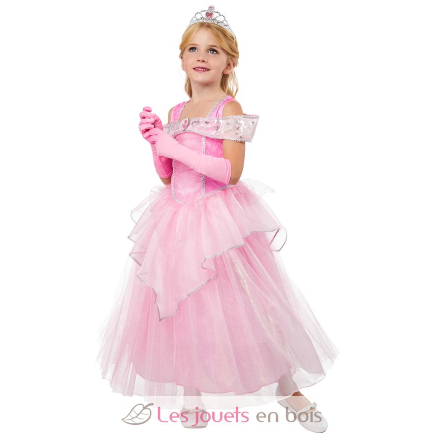 Questo costume per bambini include un scintillante abito da principessa rosa, una tiara e dei guanti.