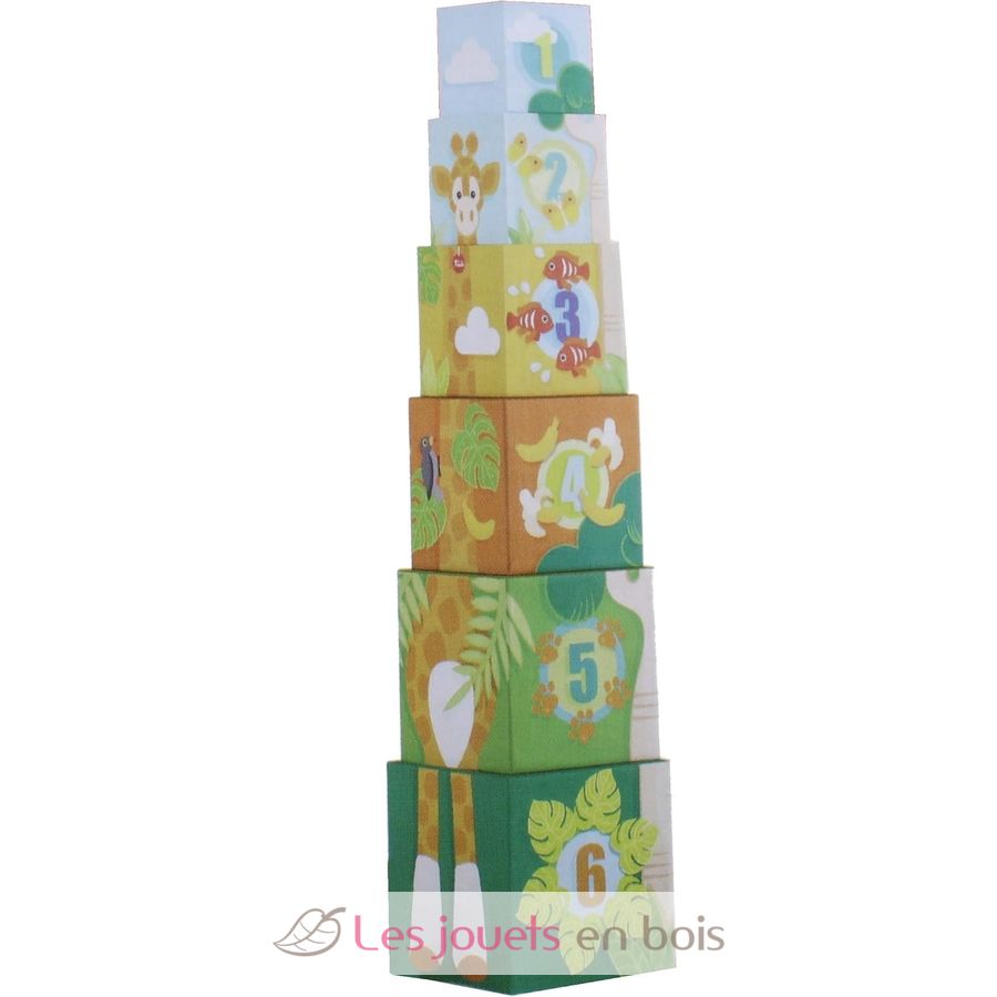 Potrà costituire una torre partendo dal cubo più grande a quello più piccolo. Poi, i bambini potranno divertirsi a trovare l'habitat preferito di ogni animaletto di legno, quindi metterlo all’interno del cubo giusto grazie all’apertura frontale.