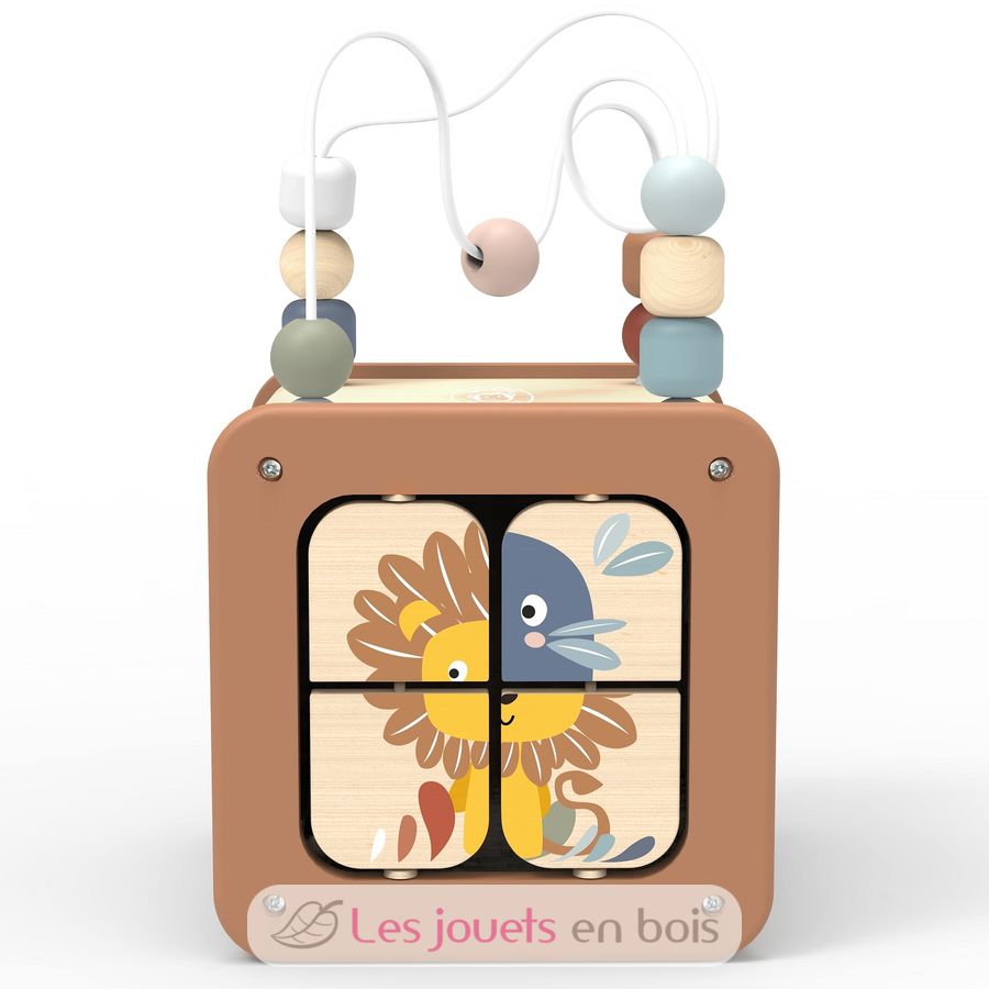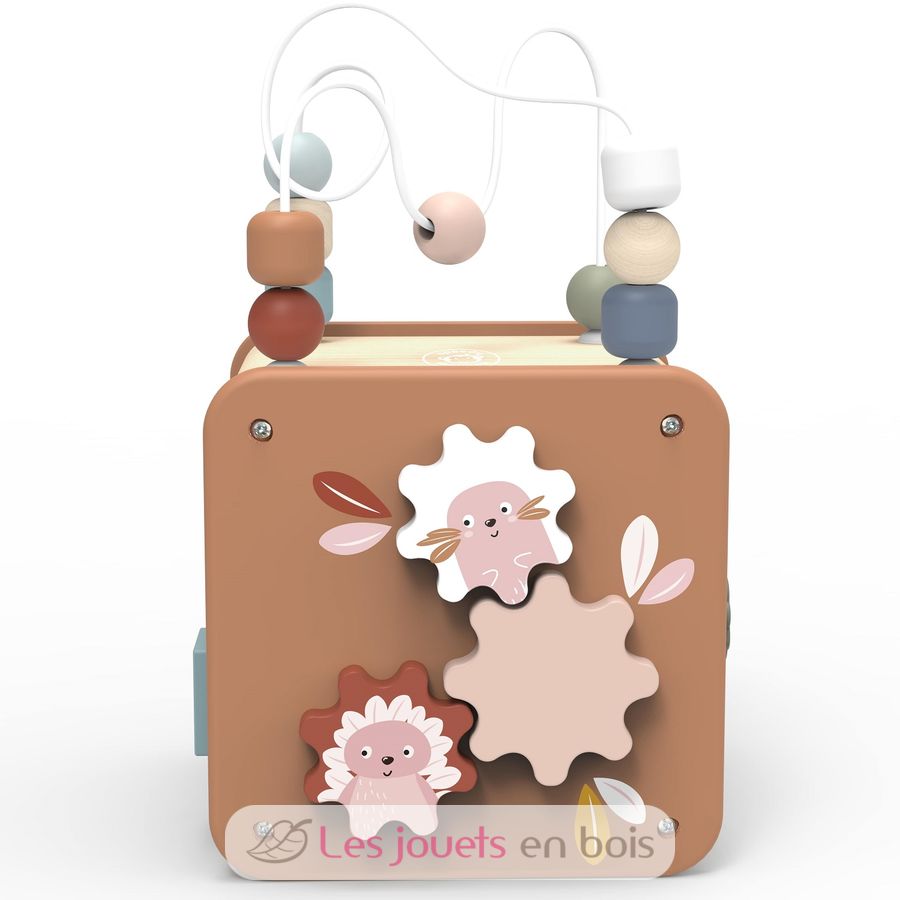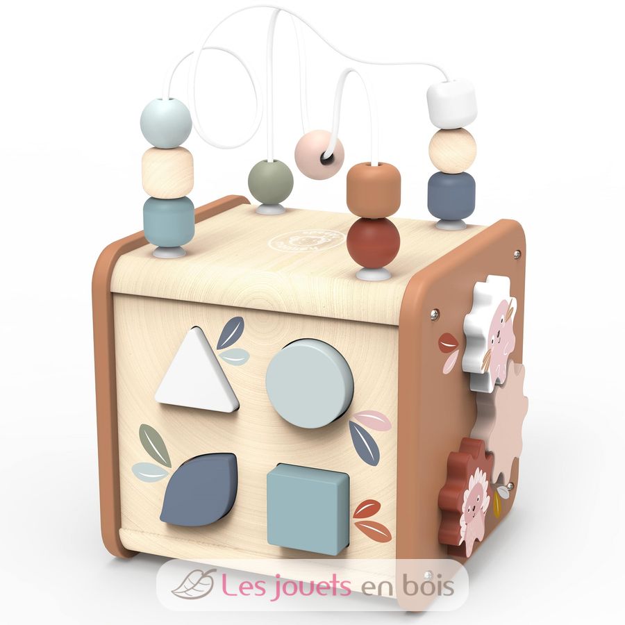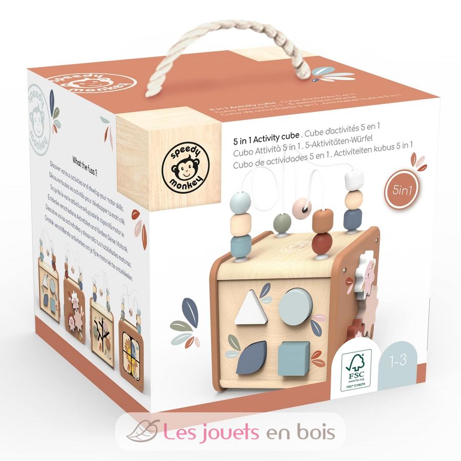 Cubo attività 5 in 1, un giocattolo di legno di Speedy Monkey.