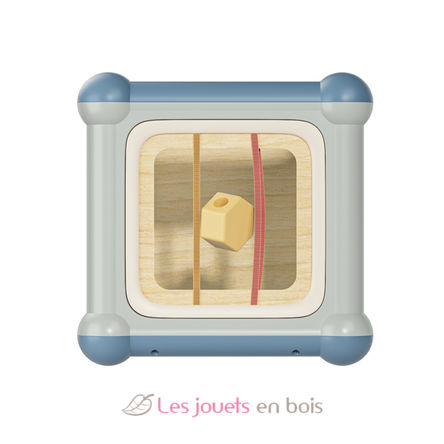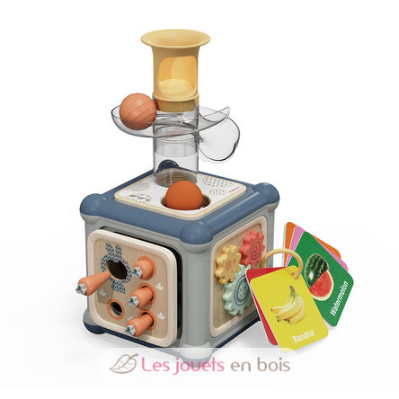 Cosa alleniamo oggi? Questo cubo multifunzionale per le capacità motorie combina 10 diverse possibilità di gioco per stimolare in modo giocoso le capacità motorie fini e la capacità di concentrazione.