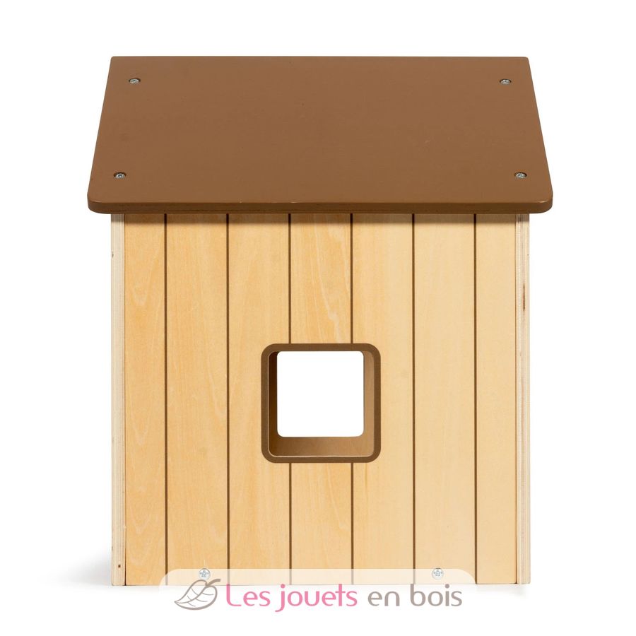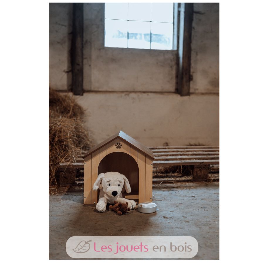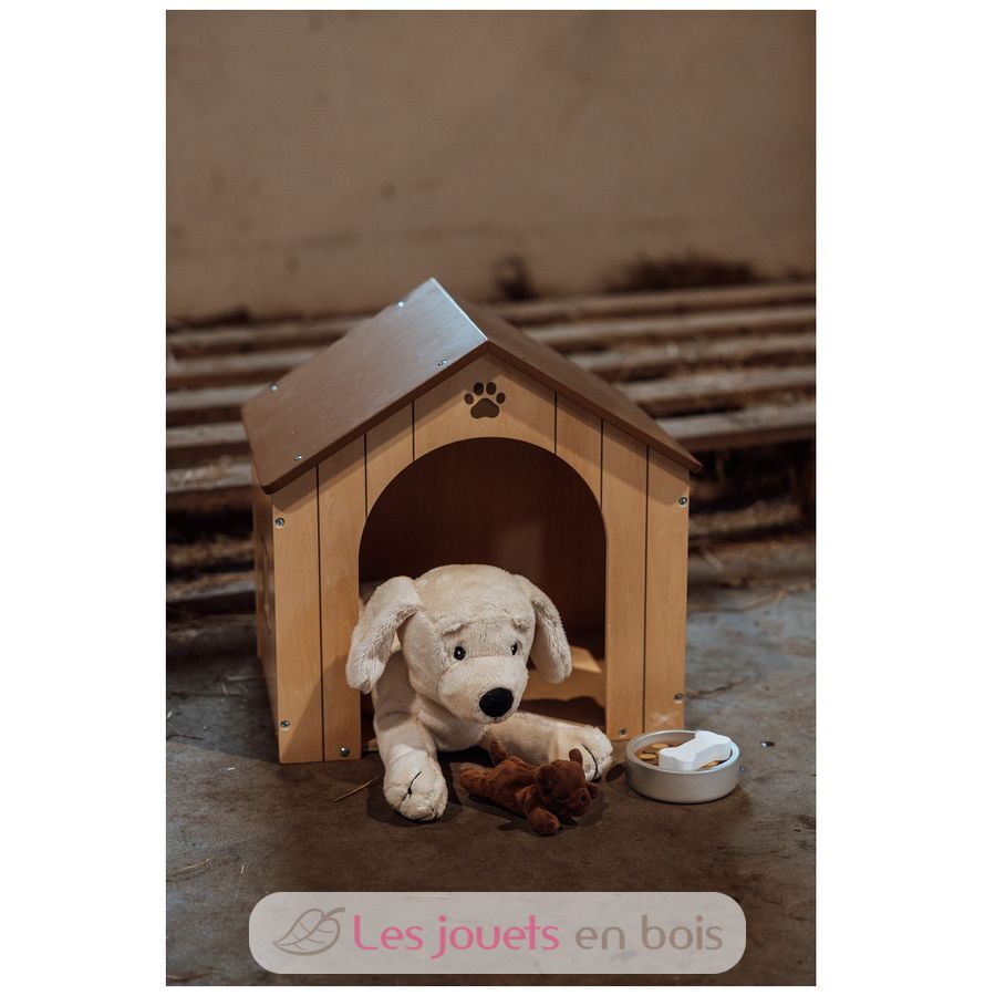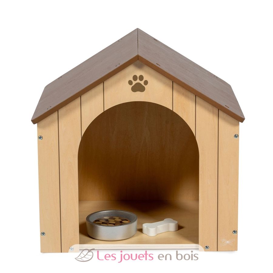 Scopri questa cuccia in legno e i suoi accessori affinché il tuo bambino si diverta a prendersi cura del suo cane di peluche.