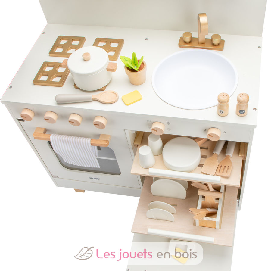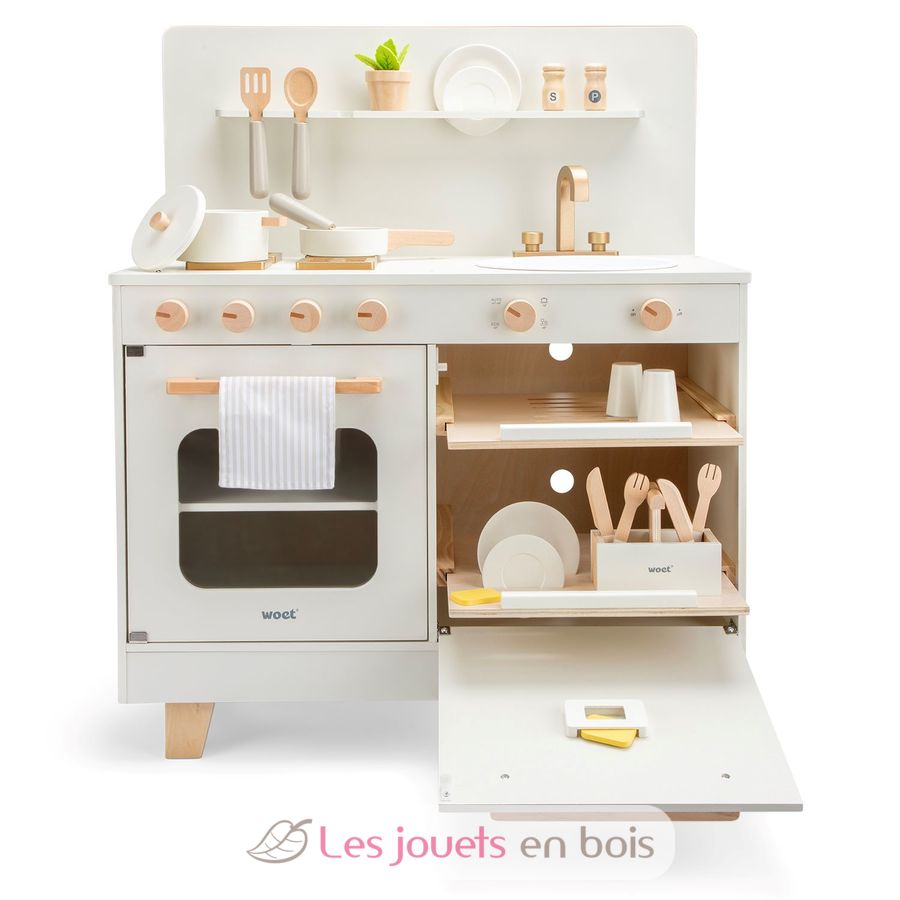 Questa graziosa cucina in legno, prodotta da New Classic Toys, ha tutto ciò di cui i bambini hanno bisogno per entrare nel mondo della cucina di fantasia. Con toni tenui, dettagli in legno naturale e un design elegante che si integra perfettamente con gli interni della casa, è un sogno che diventa realtà per i piccoli chef.