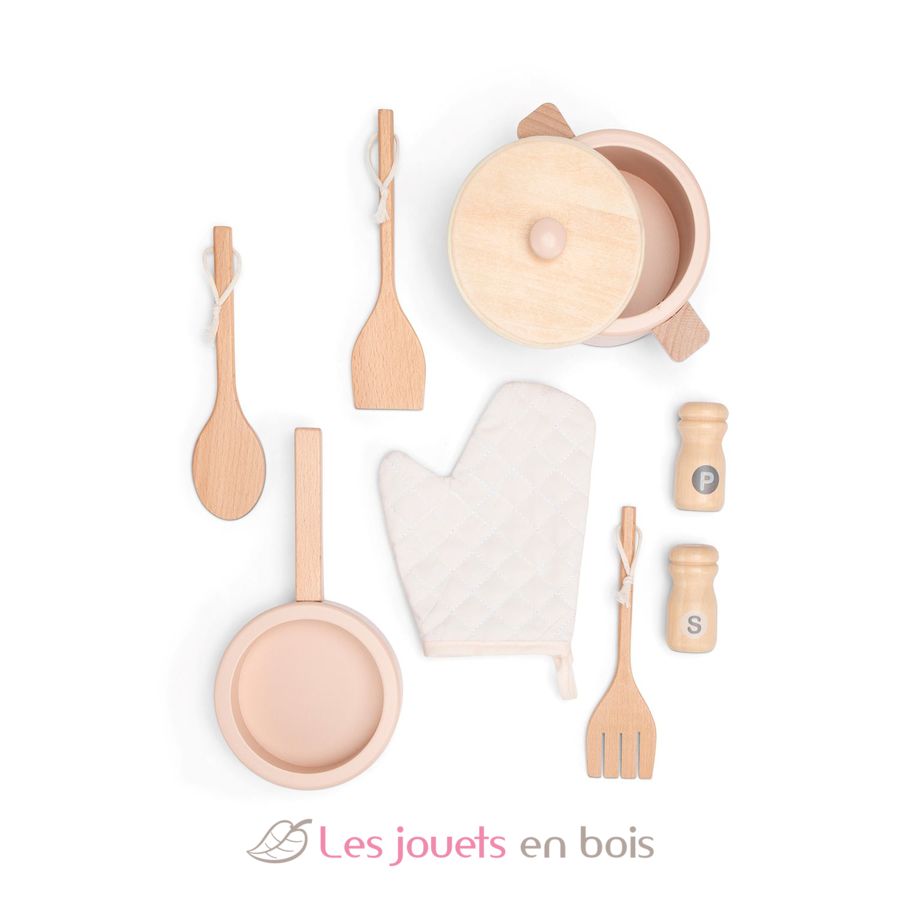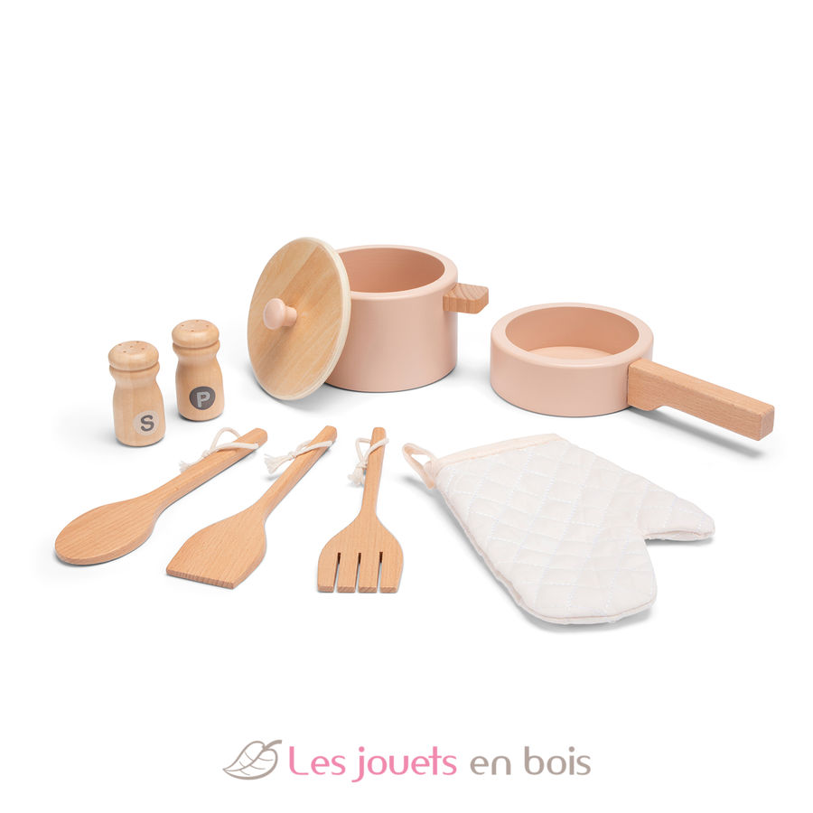 I piccoli cuochi potranno cucinare deliziosi piatti per i loro ospiti a partire dai 3 anni grazie agli accessori forniti con questa cucina: una pentola con coperchio, una padella, 3 utensili, una presina, una saliera e una pepiera.