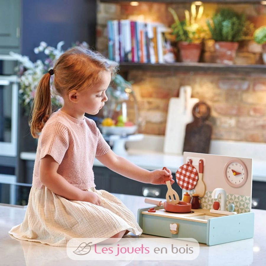 Cucina pieghevole in legno, una cucina per bambini in legno di Tender Leaf Toys.
