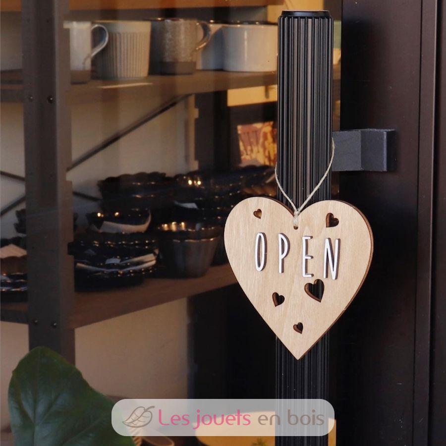 Il kit comprende: 1 cuore in legno con cordoncino incluso per appenderlo; 1 foglio di lettere autoadesive in legno bianco. Dimensioni: 9 cm.
