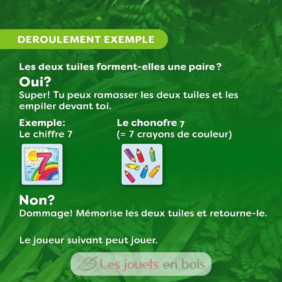 Questo gioco di memoria è stato appositamente progettato per supportare l'apprendimento precoce dei numeri. Promuove il riconoscimento dei numeri, la comprensione delle quantità e la concentrazione. Una versione per giocatore singolo permette inoltre di giocare e fare pratica individualmente, al proprio ritmo.