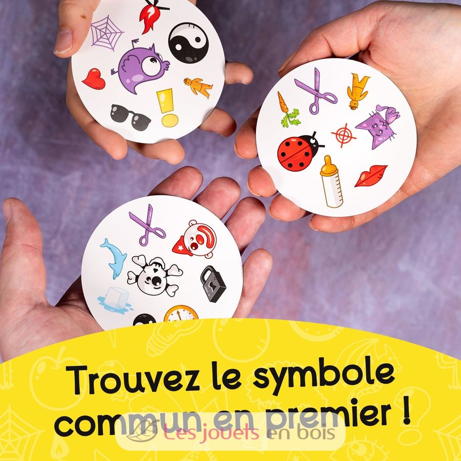 In Dobble, c'è sempre e solo un simbolo corrispondente tra le carte. Individualo più velocemente dei tuoi avversari e sii il primo a indovinarlo per vincere!