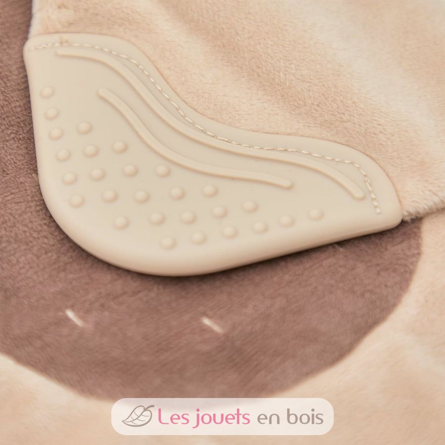 Peluche morbido per confortare il bambino. Parte in silicone con protuberanze e scanalature per lenire le gengive doloranti.
