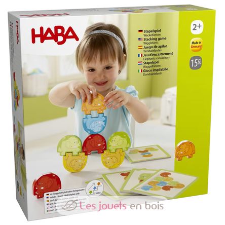 Come è divertente impilare questi elefanti in tutte le direzioni! È una grande sfida per tutti i piccoli amanti delle acrobazie. Le carte stampate su entrambi i lati offrono schemi di diverso grado di difficoltà. Questo gioco incoraggia la motricità fine e la perseveranza. Contenuto: 10 elefanti acrobatici, 5 carte modello, 1 set di regole. Dimensioni degli elefanti : L 7 x L 2 x H 6 cm. Età: da 2 anni. HABA Stunt Elephants - gioco da costruire rif. 300145