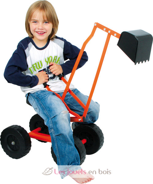 Questa scavatrice in metallo con grandi ruote in plastica (diametro 20 cm) è il massimo per i piccoli costruttori! Con il suo asse di rotazione a 360° e il sedile a secchiello, questa scavatrice robusta ma leggera diventa il giocattolo ideale per la sabbiera! Altezza della seduta circa 35 cm. Peso massimo 50 kg.