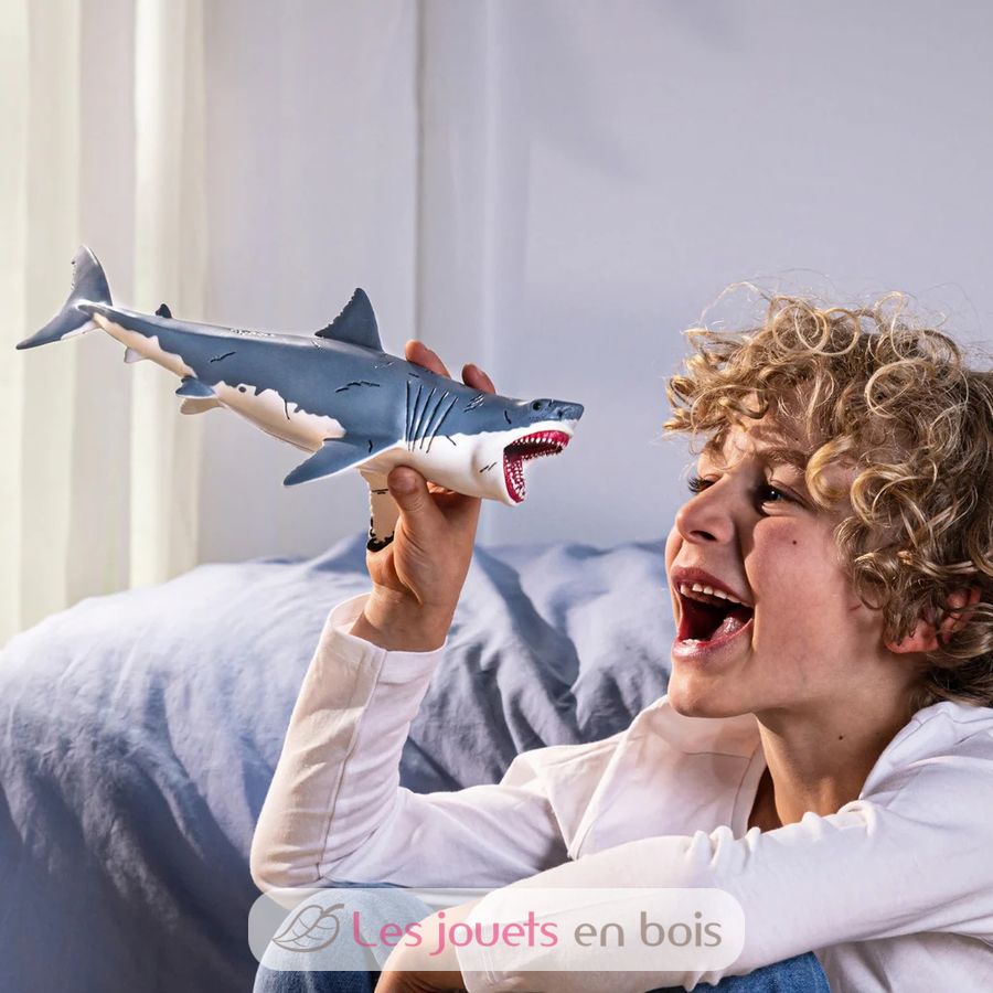 Il megalodonte, con la sua pelle grigia ricoperta di cicatrici, è un vero gigante dell'antichità. Nonostante le sue imponenti dimensioni di 17 metri e il peso di 60 tonnellate, nuota alla velocità della luce attraverso gli oceani, sempre in cerca di prede. Non c'è da stupirsi: le sue grandi dimensioni lo fanno sempre venire fame, quindi deve mangiare in grandi quantità. Apre la sua grande bocca in modo minaccioso, rivelando i suoi affilati denti di squalo. Una volta afferrata la preda, non c'è più via di scampo!