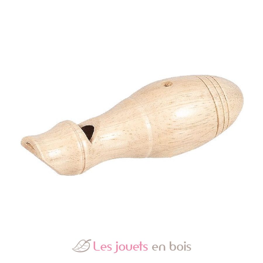 Questo strumento in legno è facile da usare. Basta soffiarci dentro come in un fischietto, quindi coprire e scoprire il foro con il dito per produrre due suoni distinti.