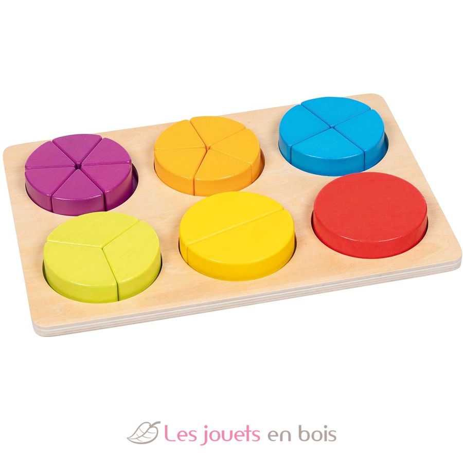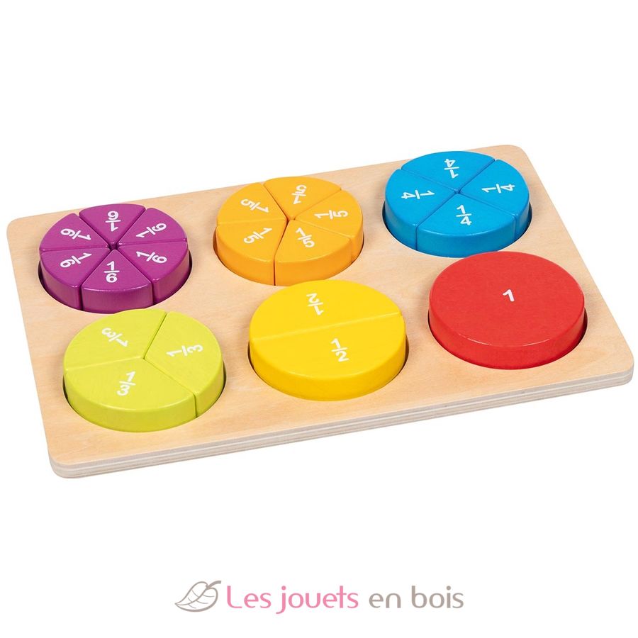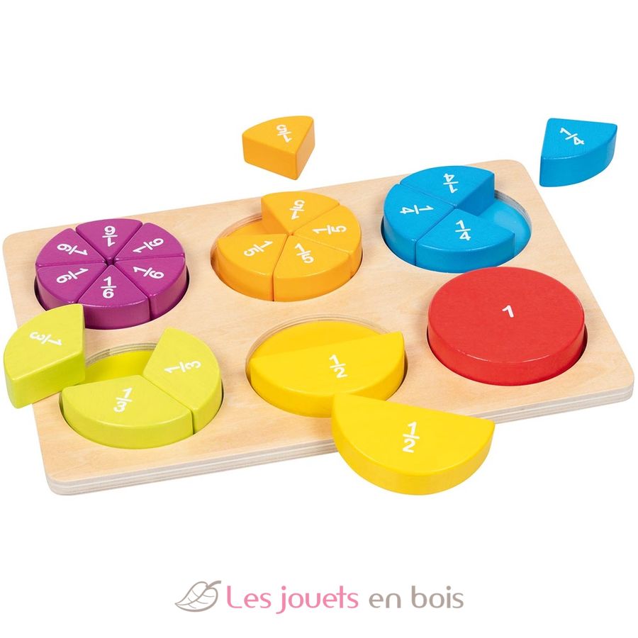 Questo gioco educativo in legno per bambini insegna in modo giocoso i concetti base delle frazioni.