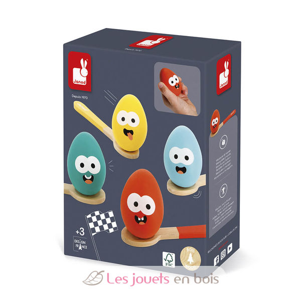 Corsa delle uova di legno, un gioco da esterno del marchio Janod. Riferimento J07729.