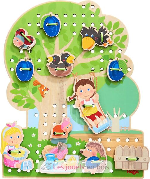 Questo gioco da infilare della Haba è un gioco educativo che stimola le capacità motorie fini, a partire dai 3 anni.