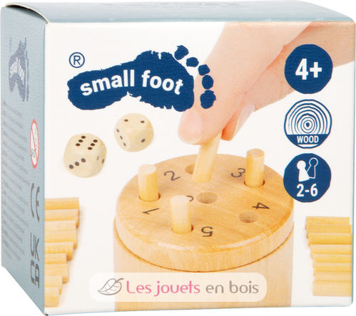Questo classico gioco in legno è adatto per due fino a sei giocatori e può essere giocato in due varianti. L'obiettivo è prima eliminare tutti i bastoncini di legno. Per fare questo, devi inserire i bastoncini nella scatola a turno in base al numero di punti ottenuti sui dadi.