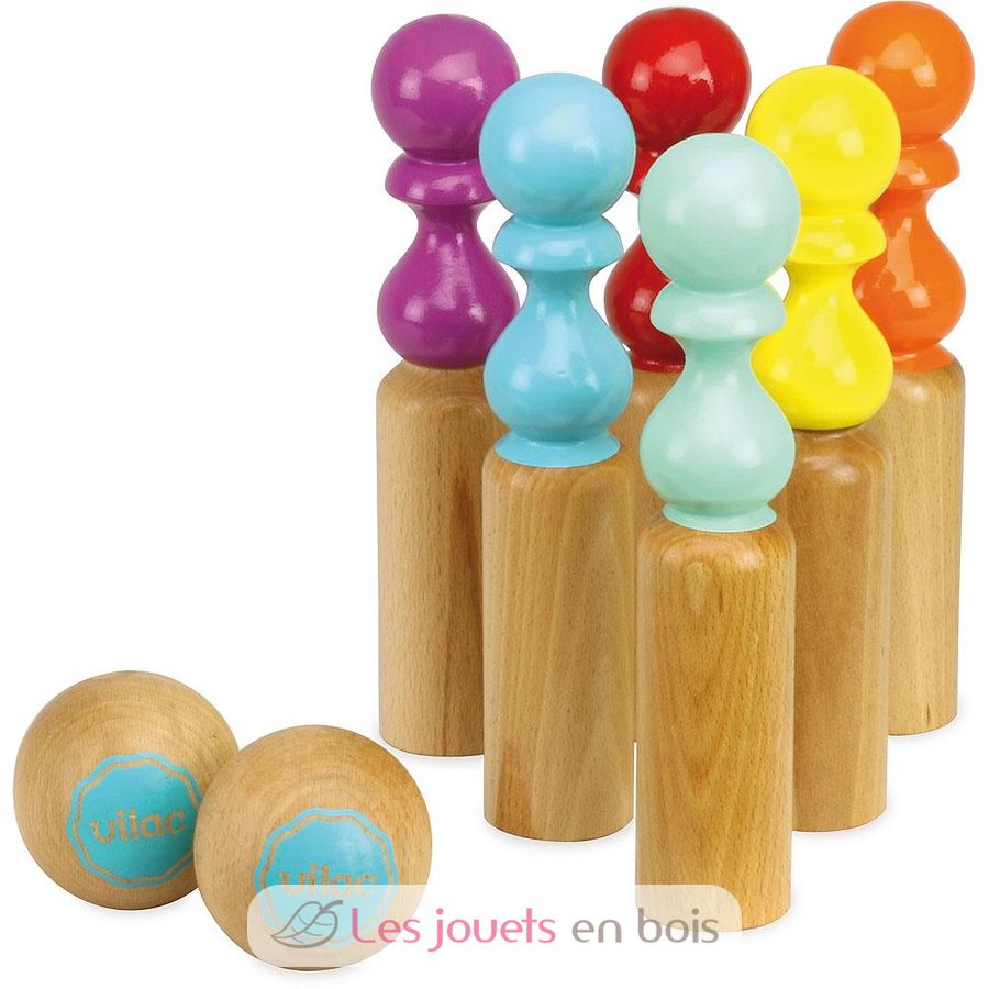 Un gioco di bowling in legno prodotto in Francia dal marchio Vilac. Riferimento 4033G.