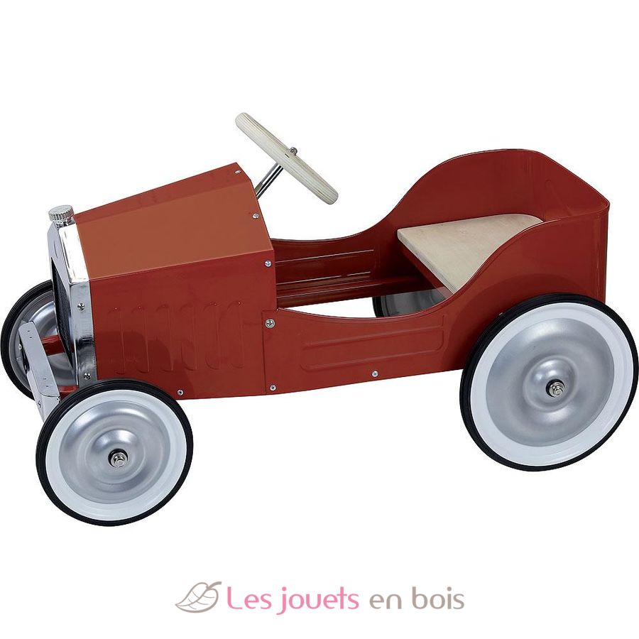 Grande auto a pedali in metallo con finitura laccata rossa ed elementi in legno naturale (volante e sedile).Un'auto elegante e senza tempo con un look retro chic per vivere avventure a partire dai 3 anni.
