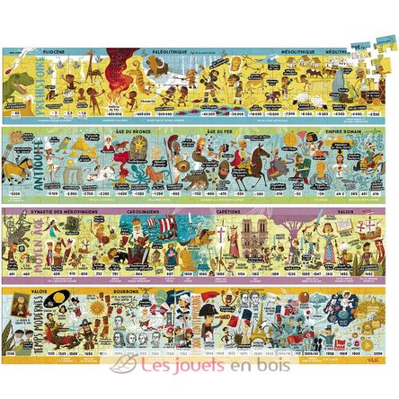 Quattro grandi puzzle di cartone da 100 pezzi che vi permetteranno di scoprire o riscoprire in modo divertente la Storia dell'umanità e della Francia, dalla preistoria ai giorni nostri: la preistoria; l'antichità; il Medioevo; l'epoca moderna e l'epoca contemporanea. A da 7 anni.