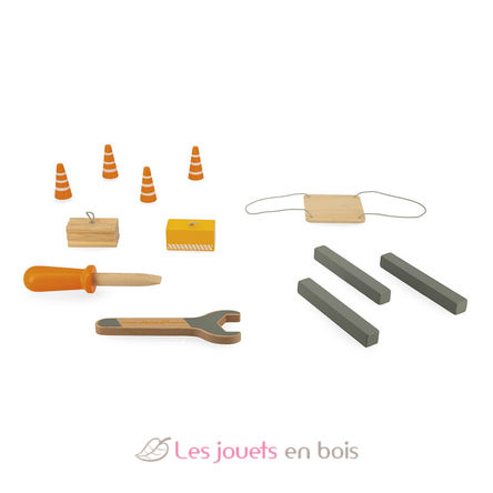 Questa magnifica gru in legno, dai toni naturali, arancioni e rossi, è dotata di 10 accessori e 2 utensili. È fabbricata in legno FSC (proveniente da foreste gestite in modo sostenibile).