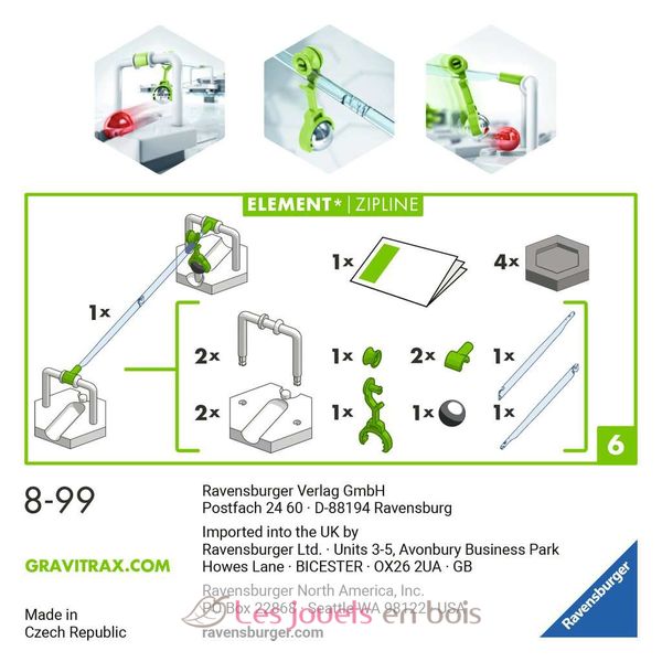 Ravviva i tuoi circuiti GraviTrax con questa zip line che permetterà alla tua palla di superare grandi dislivelli. Questa zipline porterà sicuramente un effetto spettacolare al tuo percorso di biglie!